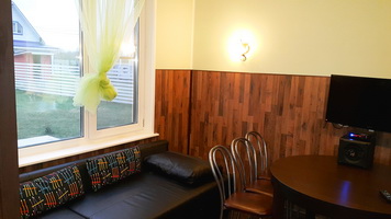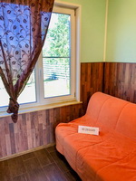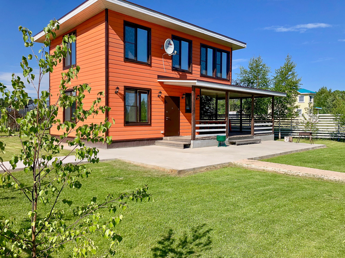 Апельсиновый коттедж Описание: Коттедж на берегу озера до воды 30 м, обставлен стильной и современной мебелью. Для удобства наших гостей в доме: теплые полы, спутниковое ТВ, DVD, караоке, современная кухня полностью укоплектованная посудой и всеми необходимыми приборами, холодильник и микроволновая печь. Своя финская сауна. 2 туалета, 2 душа, 5 спален с двухспальными кроватями, терраса 38 м2, индивидуальный паркинг. Рядом лес, песчаный пляж, пирс длиной 20 м, зона отдыха с мангалом, зимняя горка высотой 5 м, детская площадка, лодка, охрана, круглогодичный подъезд. |