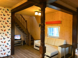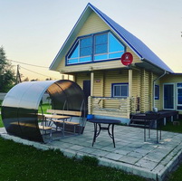Солнечный коттедж Коттедж на берегу озера до воды 15 м, обставлен стильной и современной мебелью. Для удобства наших гостей в доме: теплые полы, спутниковое ТВ, DVD, караоке, современная кухня полностью укоплектованная посудой и всеми необходимыми приборами, холодильник и микроволновая печь. Своя баня на дровах. 2 туалета, 2 душа, комната отдыха с панорамными окнами,индивидуальный паркинг. Рядом лес, песчаный пляж, пирс длиной 20 м, зона отдыха с мангалом, зимняя горка высотой 5 м, детская площадка, лодка, охрана, круглогодичный подъезд. |